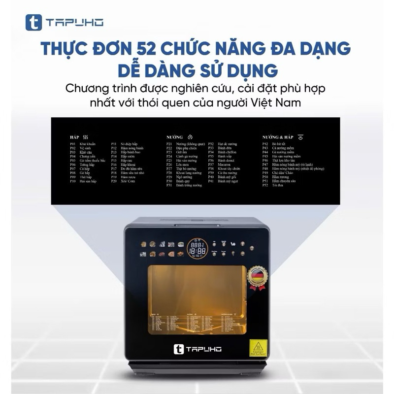 Chức năng: Chiên hơi nước, nướng, hấp, sấy, rã đông…